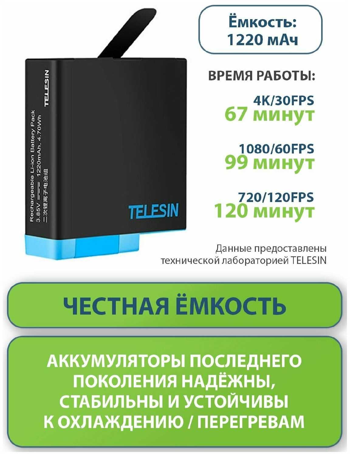 Отзывы о Аккумулятор Telesin для GoPro HERO8/HERO7black/HERO6/HERO5