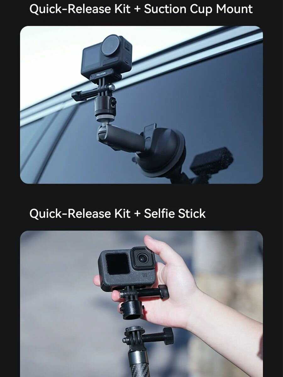 Подходит к стандартному креплению штатива для камер и с другой стороны для крепления gopro. выручил, при том что доставили на следующий день