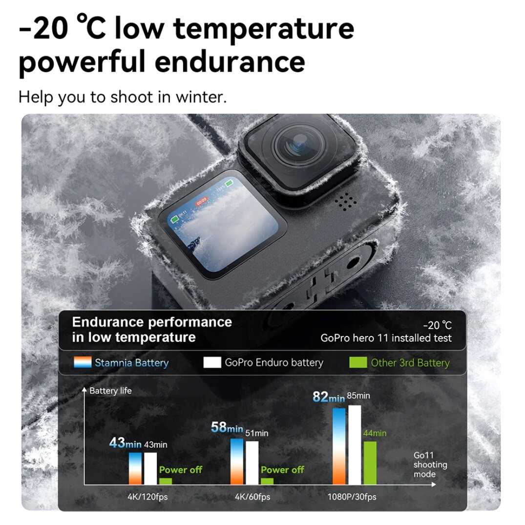 - + Брал для GoPro 12. Отличные аккумуляторы и зарядные кейс. Пользуюсь постоянно. Заряд держит как оригинальный аккумулятор. Рекомендую !