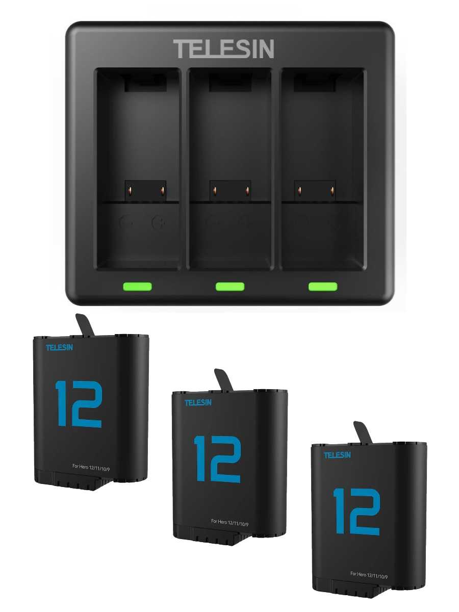 Отзывы о Комплект зарядного устройства тройного и 2 АКБ Telesin для GoPro Hero 12/11/10/9