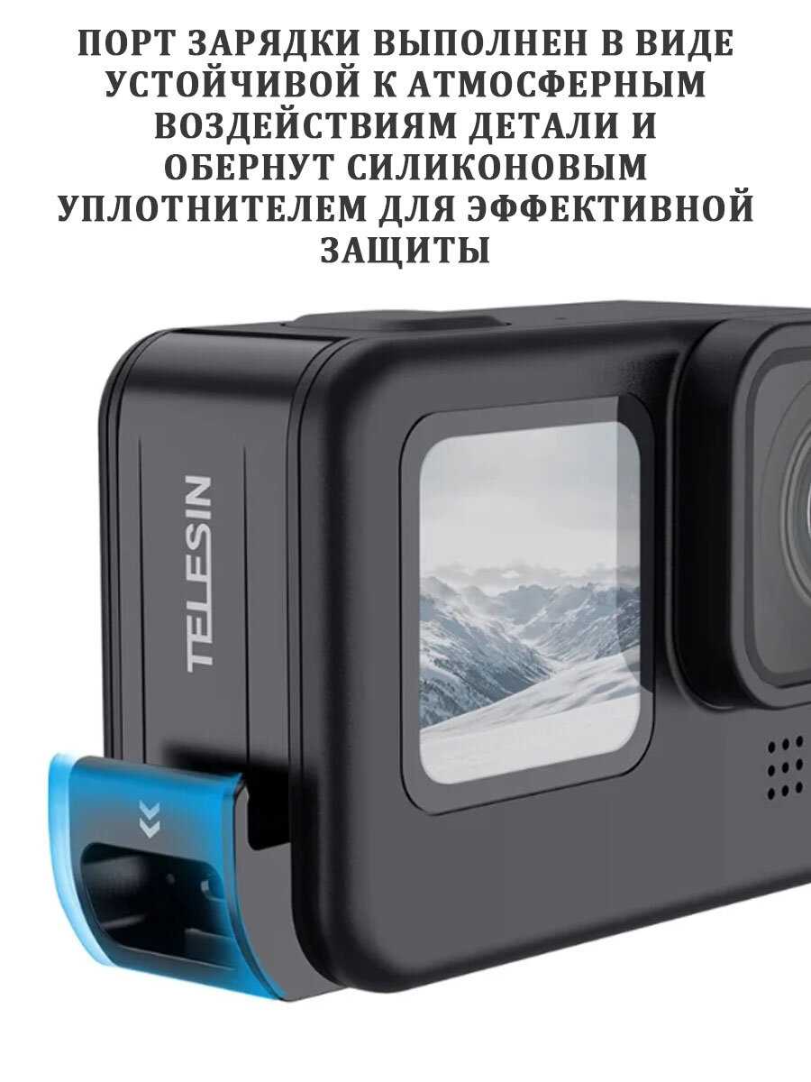 | Дополнительная информация : | Благодаря защитной крышке для батарейного отсека можно одновременно заряжать экшн-камеру и вести съемку в любых погодных условиях, С внутренней стороны крышка оснащена мягкой прокладкой из материала EVA для лучшей амортизации и защиты аккумулятора от внешнего воздействия. Аксессуар совместим с экшн-камерами GoPro 12/11/10/9. |