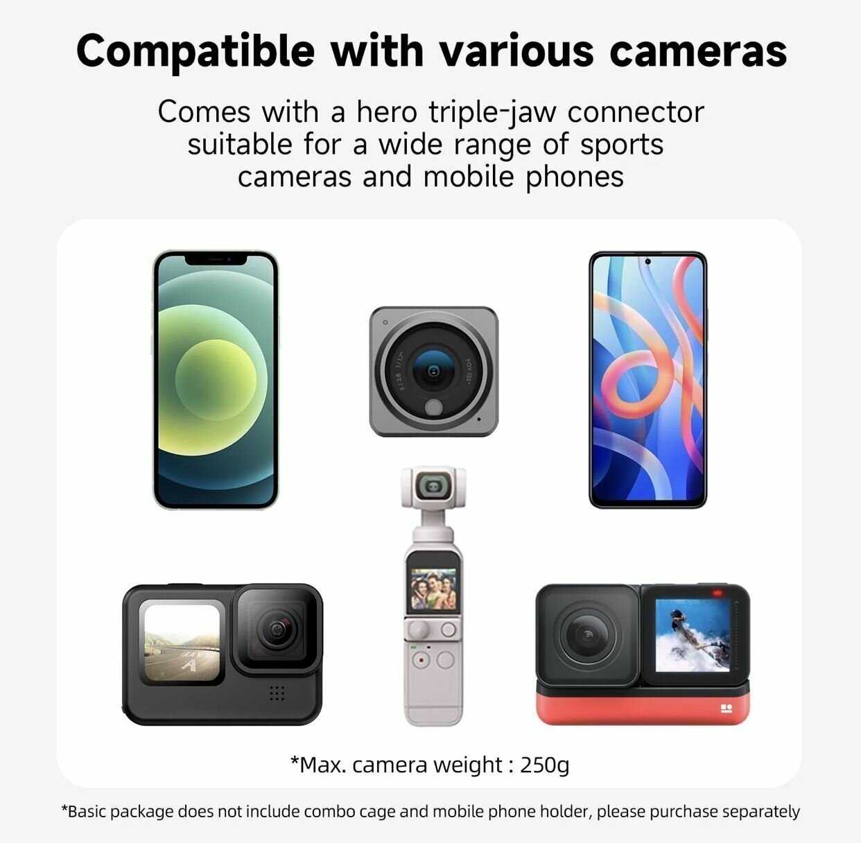| Совместимые бренды : | DJI, Eken, Fujifilm, Garmin, GoPro, Insta360, SJCAM, Samsung, Sony, XiaoYi, Xiaomi, универсальный |