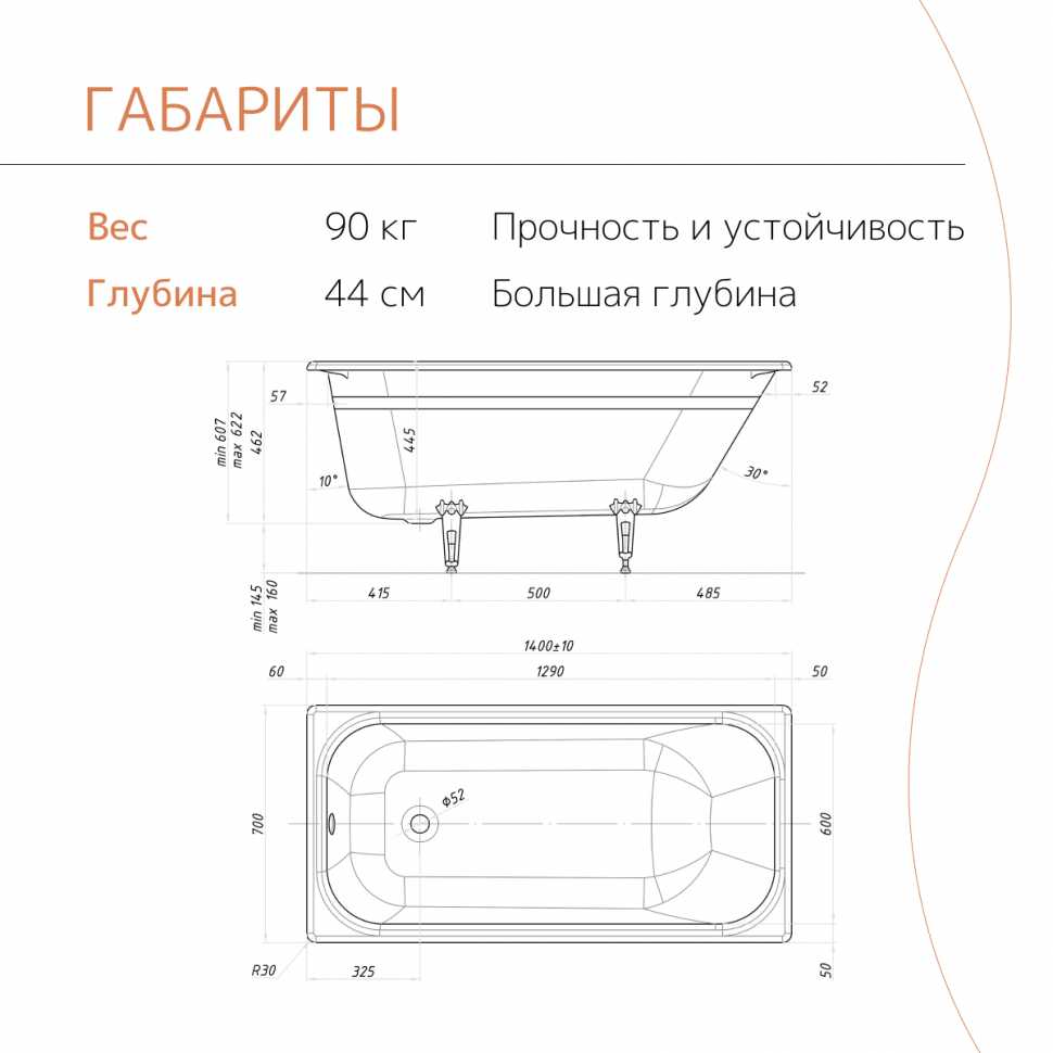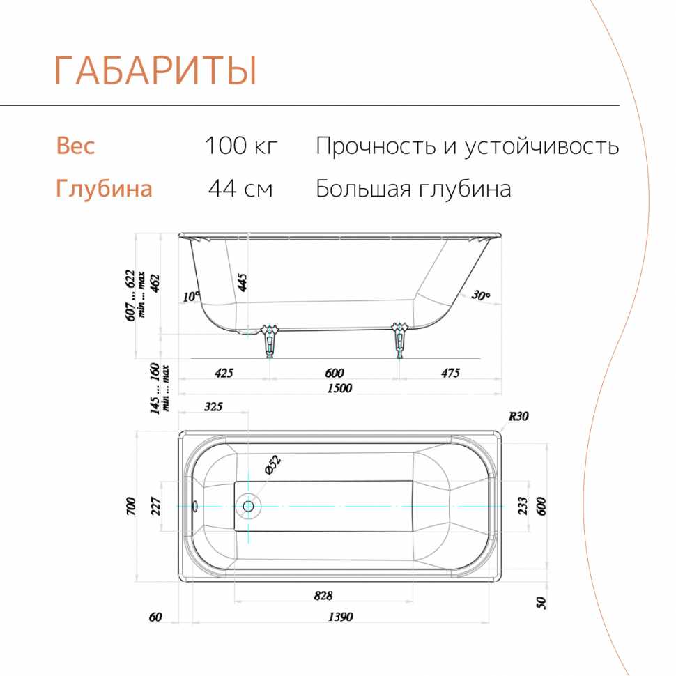 - Ванна долго держит температуру воды, позволяя нежиться 1,5–2 часа без необходимости добавлять горячую, в отличие от стальных аналогов.