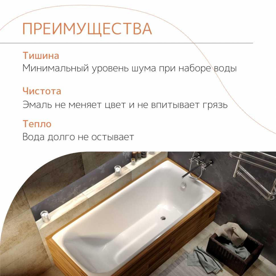 - После слива теплой воды грязь смывается гораздо легче по сравнению со стальными ваннами.