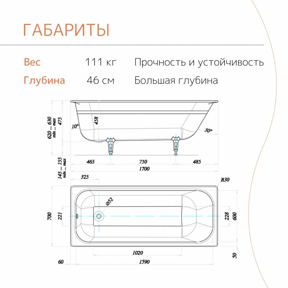 - Геометрия точная, подходит для хрущевок и нестандартных санузлов после ремонта, где стандартные 170 см не помещаются.