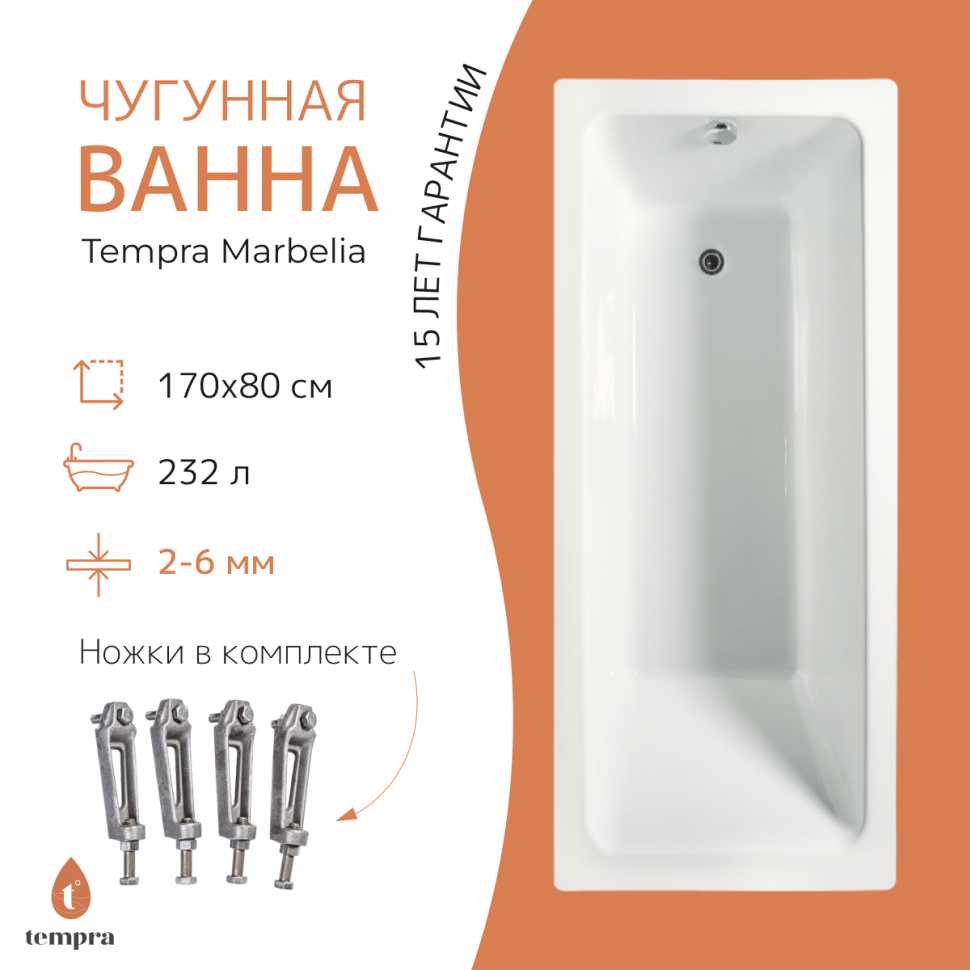 - + Лучшая цена, хорошее качество, отличная чугунная ванна