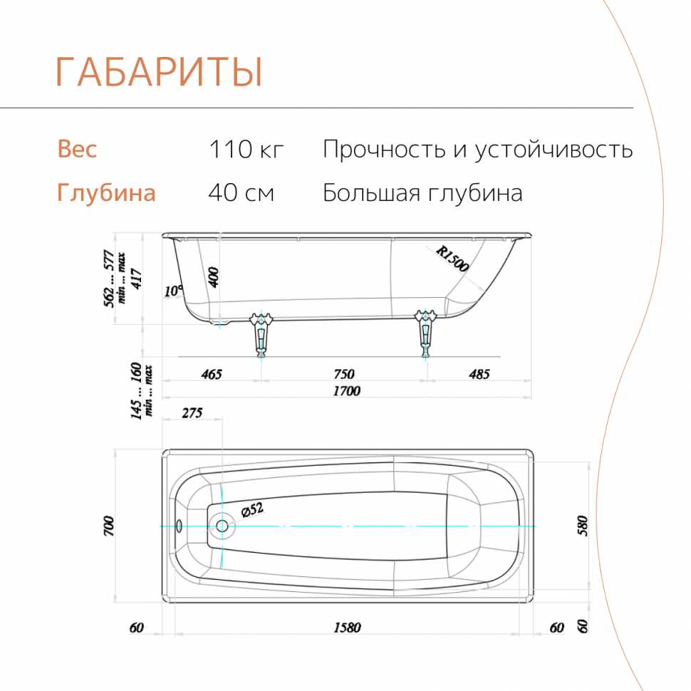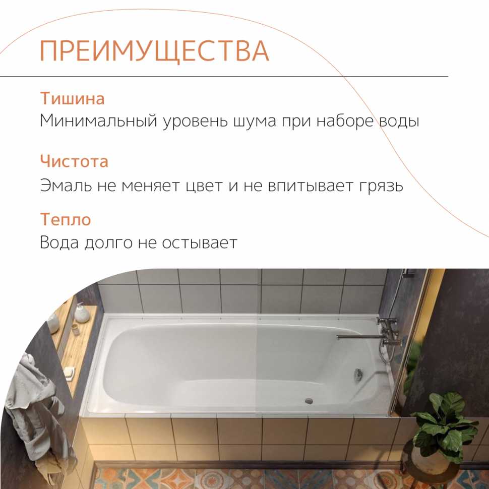Понравилась прямоугольная форма ванны, ножки в комплекте, ровное покрытие и края. Отлично вписалась в размеры ванной комнаты, идеально белый цвет, внешне приятно выглядит, хорошо держит тепло, легко мыть. Отлично за эти деньги.