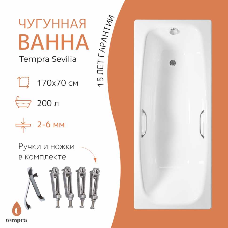 Отзывы о Ванна чугунная Tempra Sevilia (квадратные ручки)