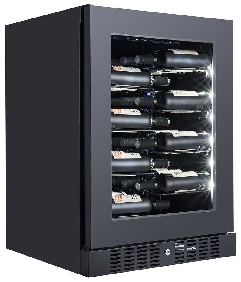 Эта модель винного шкафа среднего размера в него можно разместить прядка сорока бутылок. Для бережного хранения вина внутри шкафа сохраняется постоянная температура и влажность. Специальный вентилятор транспортирует воздух внутри шкафа создавая одинаковую температуру во всех уголках холодильника.