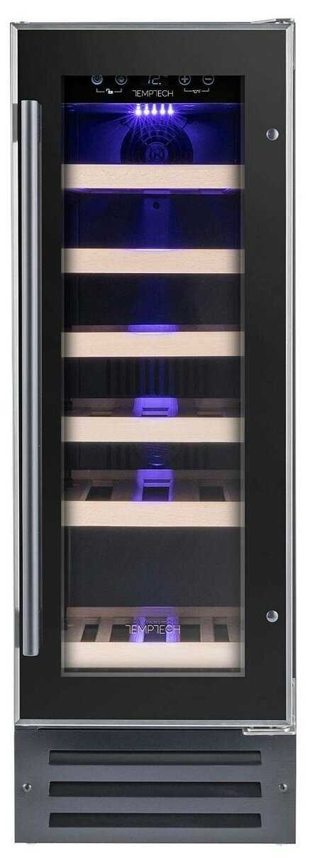 Хороший и небольшой винный шкаф. Купили в квартиру, особо много места он не занимает, так как встроили его в кухонный гарнитур. Работает исправно. Уровень шума не высокий, при работе не мешает. Стеклопакет двойной на дверце, поэтому температура не уходит за пределы винного шкафа. Также дверь плотно захлопывается. У шкафа одна температурная зона. Помещается 19 бутылок. Полки выполнены из крепкого дерева, есть освещение