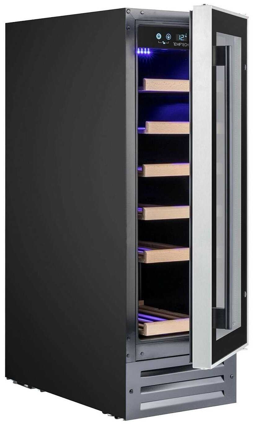 Хороший и небольшой винный шкаф. Купили в квартиру, особо много места он не занимает, так как встроили его в кухонный гарнитур. Работает исправно. Уровень шума не высокий, при работе не мешает. Стеклопакет двойной на дверце, поэтому температура не уходит за пределы винного шкафа. Также дверь плотно захлопывается. У шкафа одна температурная зона. Помещается 19 бутылок. Полки выполнены из крепкого дерева, есть освещение