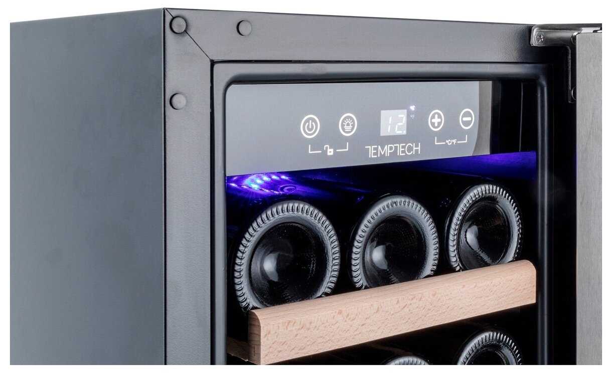 Мы не испытывали сложностей с установкой этого шкафа на нашей кухни. Все просто и понятно. Габариты шкафа позволяют свободно его установить под столешницу. Работает шкаф от обычной сети 220Вт. Дверца шкафа прозрачная и бутылки видно, при желании можно включить подсветку. Ее мощность можно регулировать. Недостатков в этом в этом шкафу не нашли.