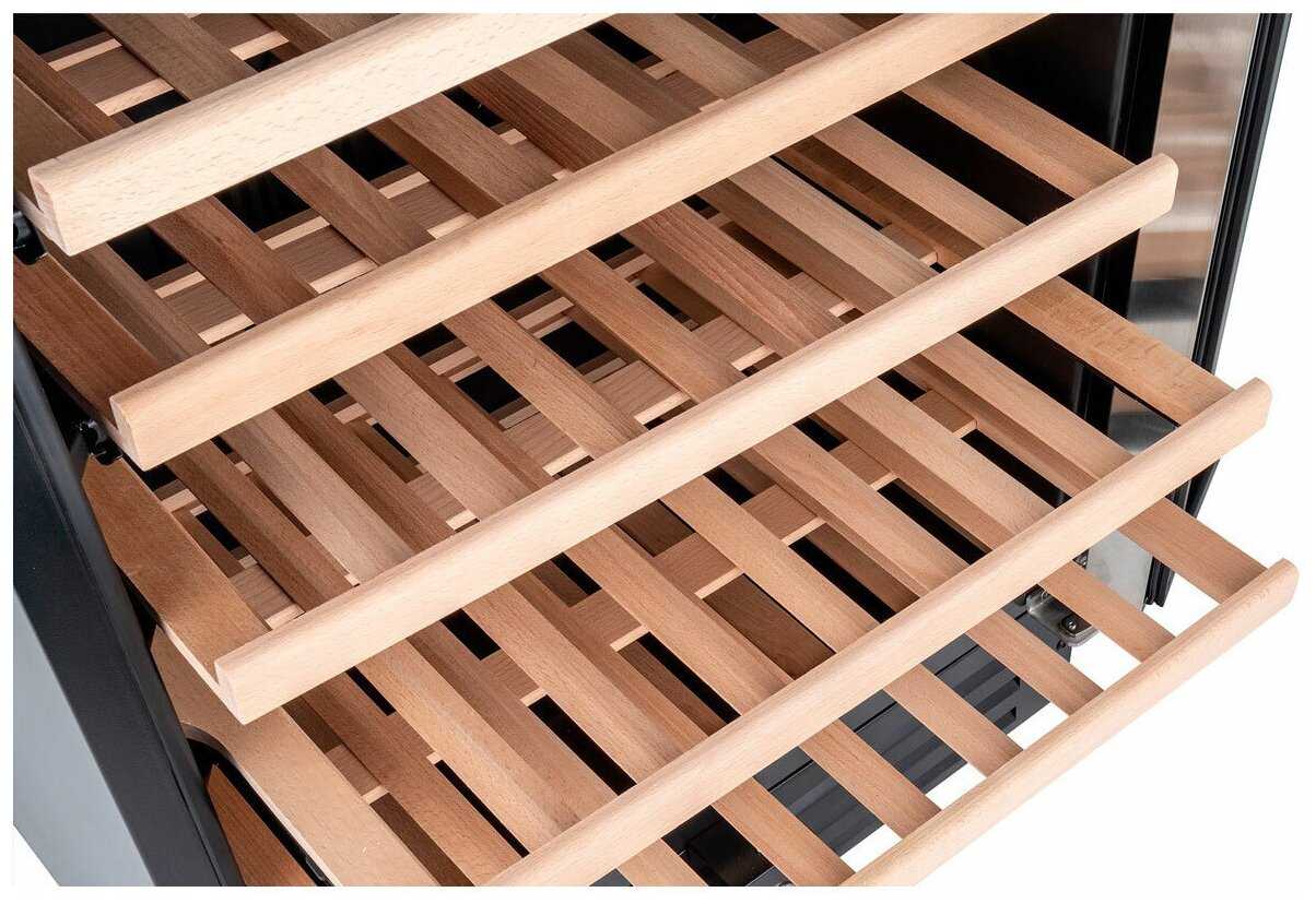 - + Премиальное качество материалов и сборки. Шикарно выполненные буковые решетчатые полочки. Бесшумная и безупречная работа компрессора. Подсветка.