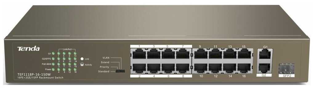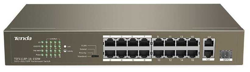 6 отзывов пользователей o Tenda TEF1118P-16-150W