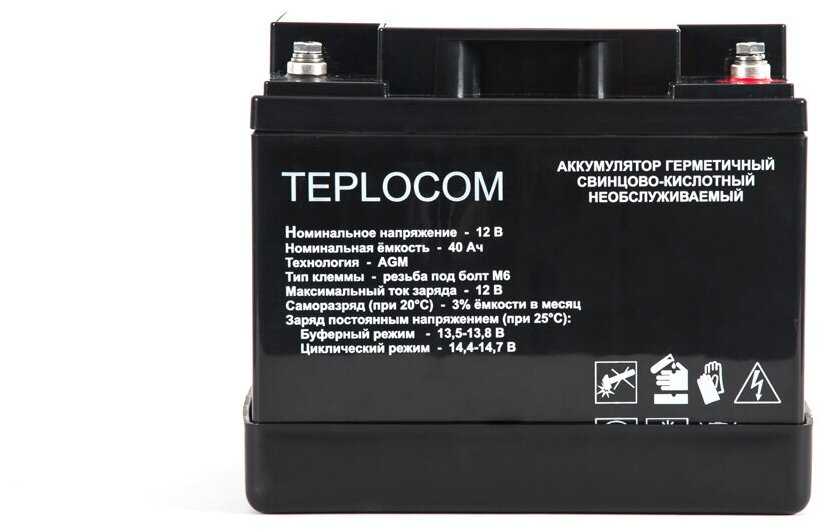 Отзывы о Аккумулятор герметичный свинцово-кислотный TEPLOCOM 40Ач