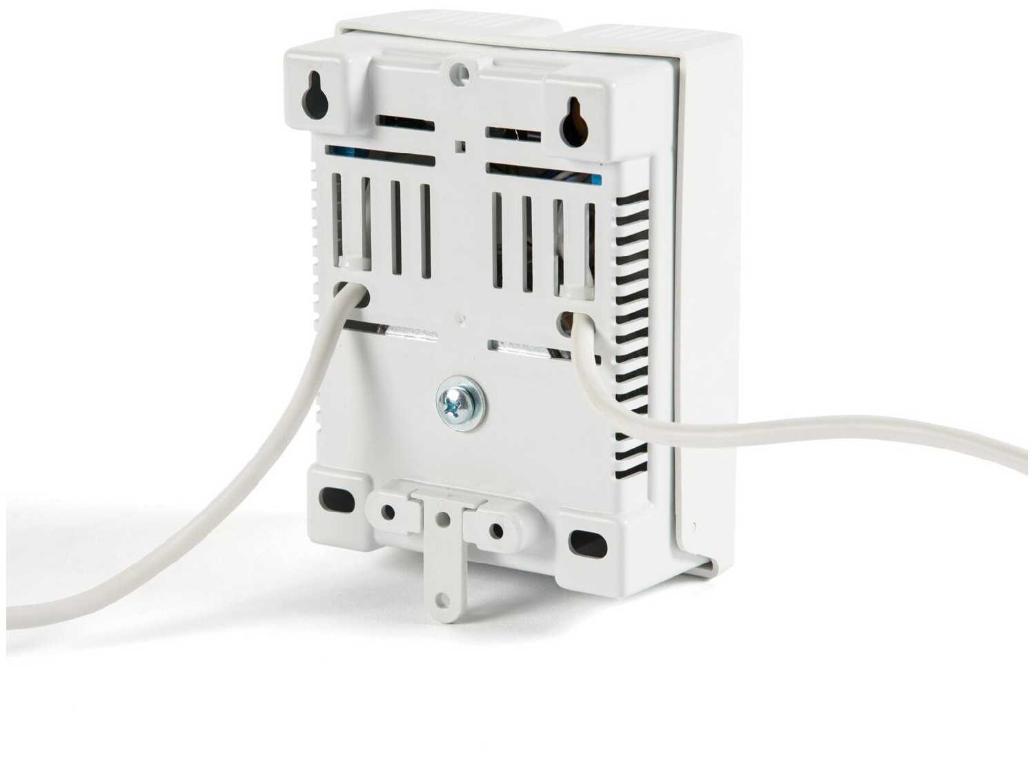 Пользователи единогласно хвалят компактность (габариты 175×110×90 мм) и продуманность креплений. Конструкция позволяет быстро зафиксировать корпус на вертикальной поверхности рядом с котлом, а малый вес (1,7 кг) исключает необходимость усиленного крепежа. Однако отмечается недостаточная длина сетевого шнура — всего 1,5 метра. -