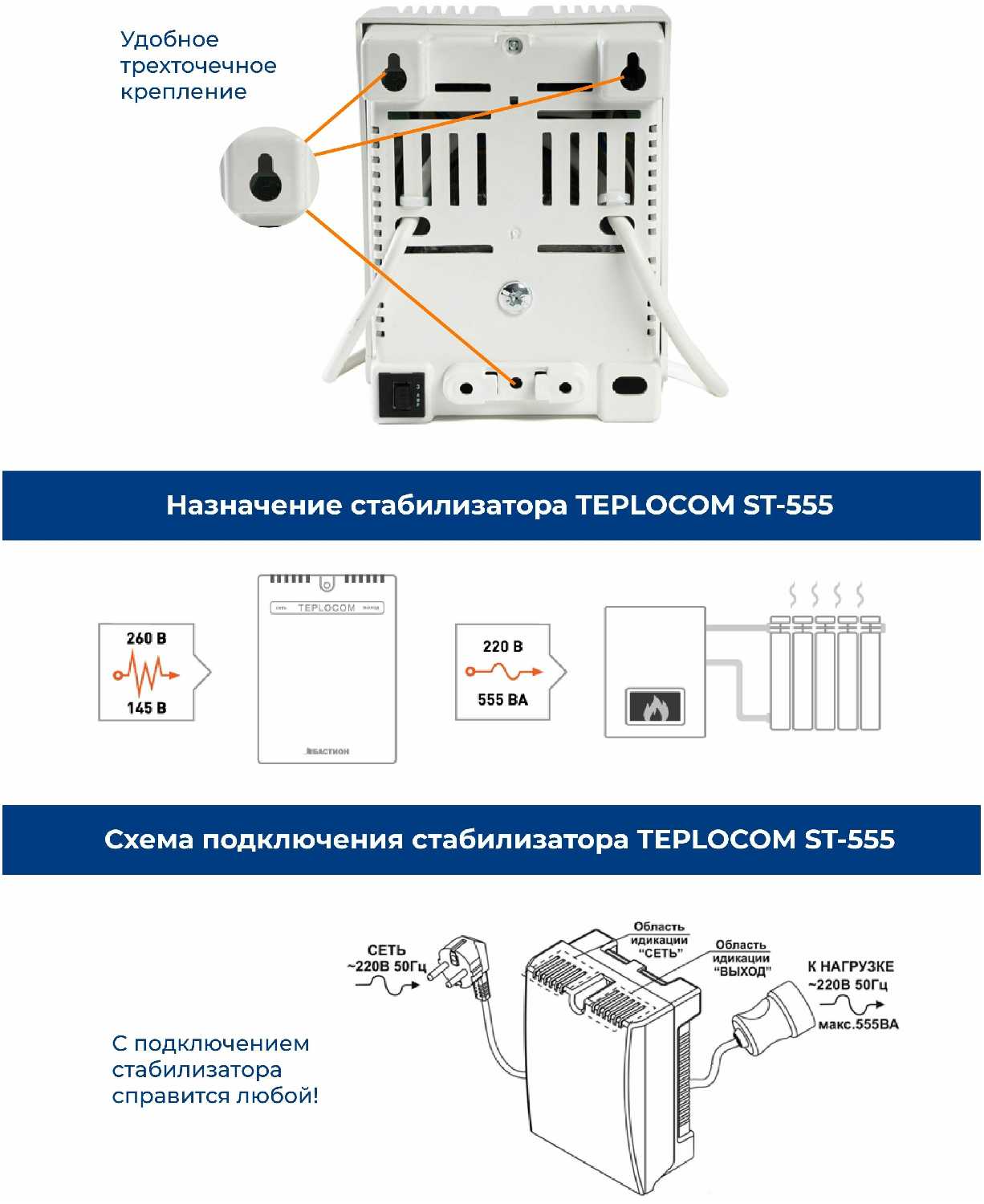 Отзывы о Стабилизатор напряжения TEPLOCOM ST-555
