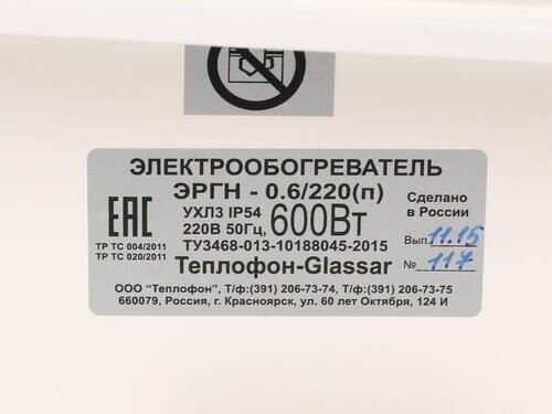 Отзывы о Инфракрасный обогреватель Теплофон Glassar (эргн 0,6)