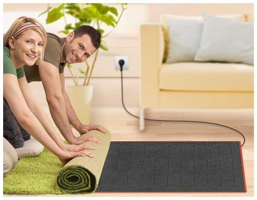 - Не требует стационарной установки: достаточно разложить под ковром и подключить к розетке.