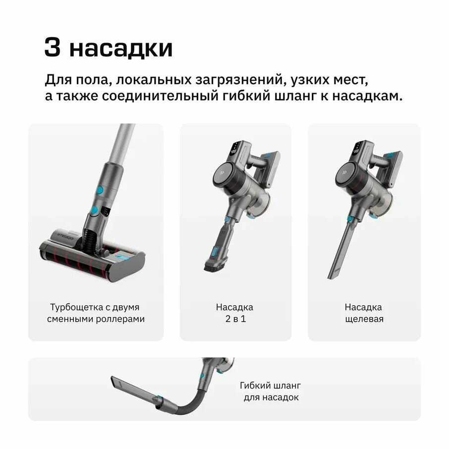 Хорошая сила всасывания, полный комплект, удобная щетка с 2-мя валиками