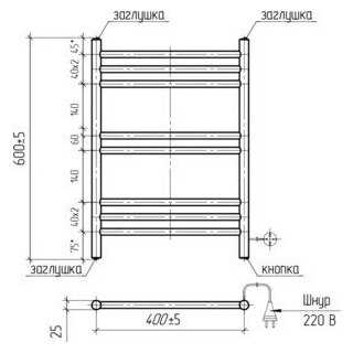 Отзывы о Электрический полотенцесушитель Tera Богема с греющим кабелем 8 перекладин