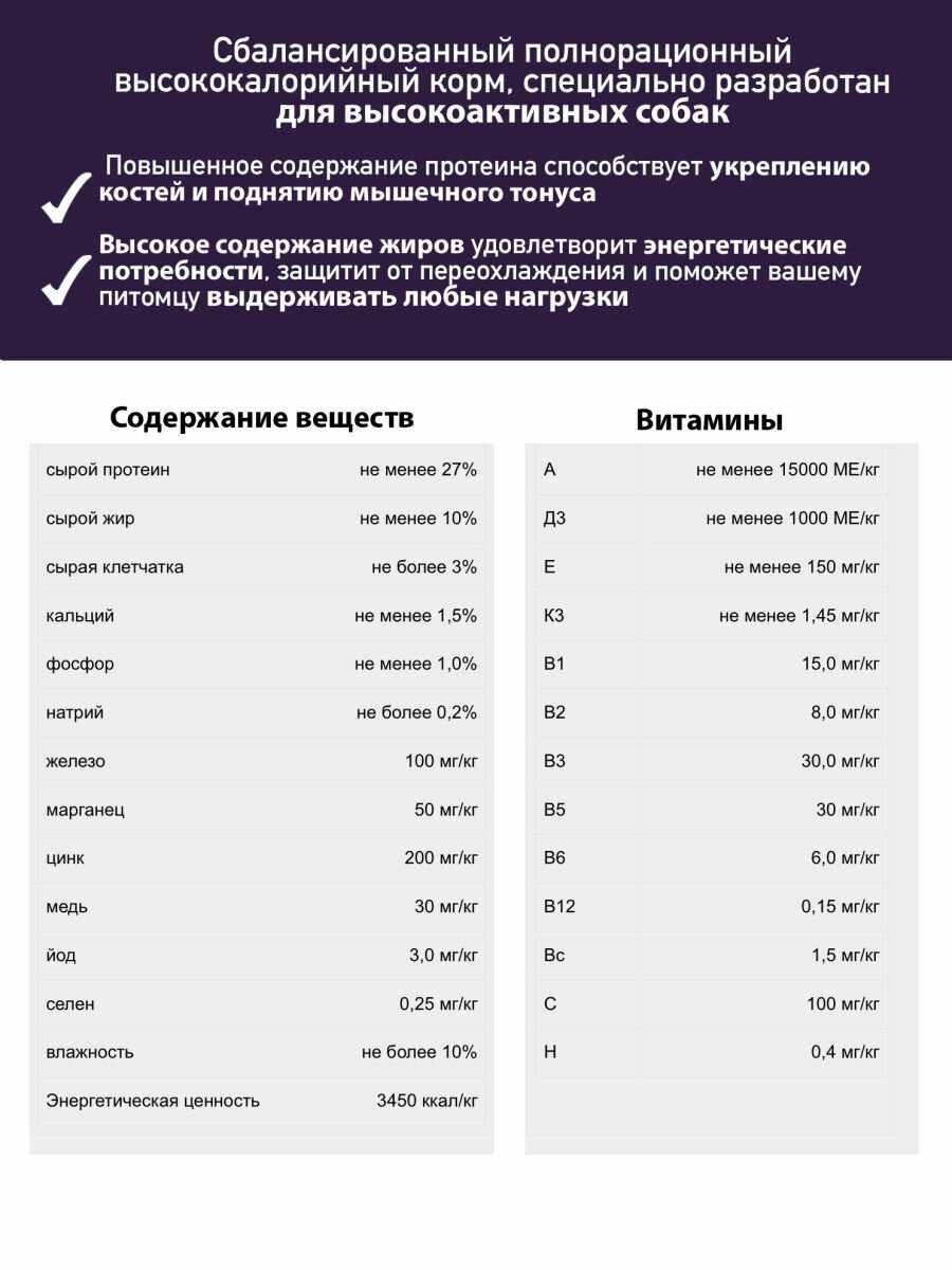 | Энергетическая ценность : | 3450 ккал/кг |