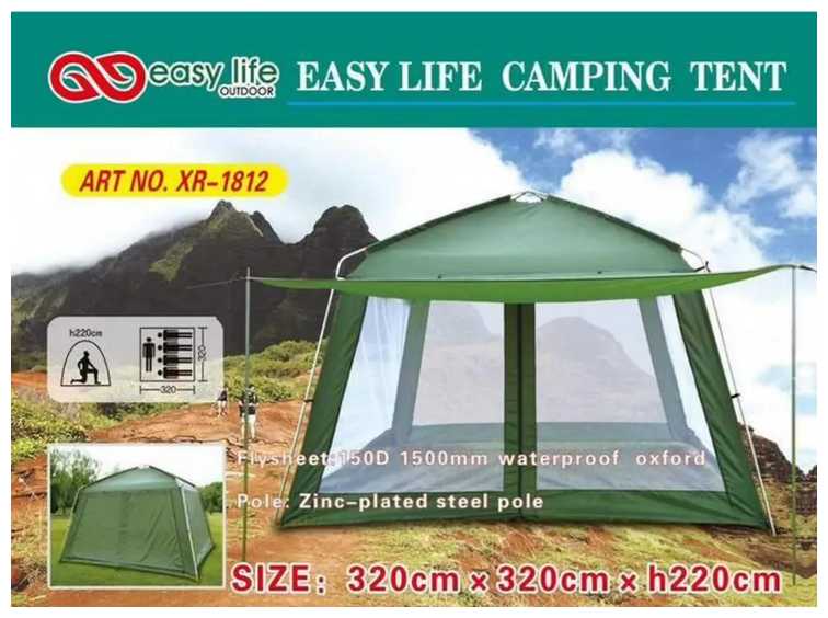 Отзывы о Шатер туристический, кухня, беседка 320 х 320 х h220 см с москитной сеткой Terbo 3412