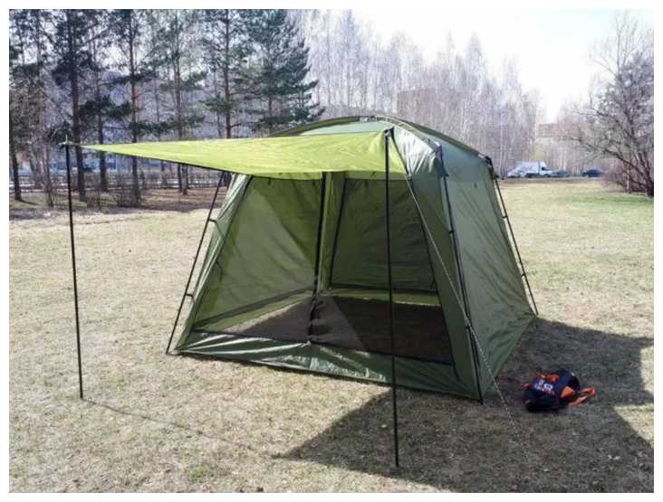 | Дополнительная информация : | подробная комплектация: Шатер, колышки, оттяжки, стойки для навеса, сумка-чехол |