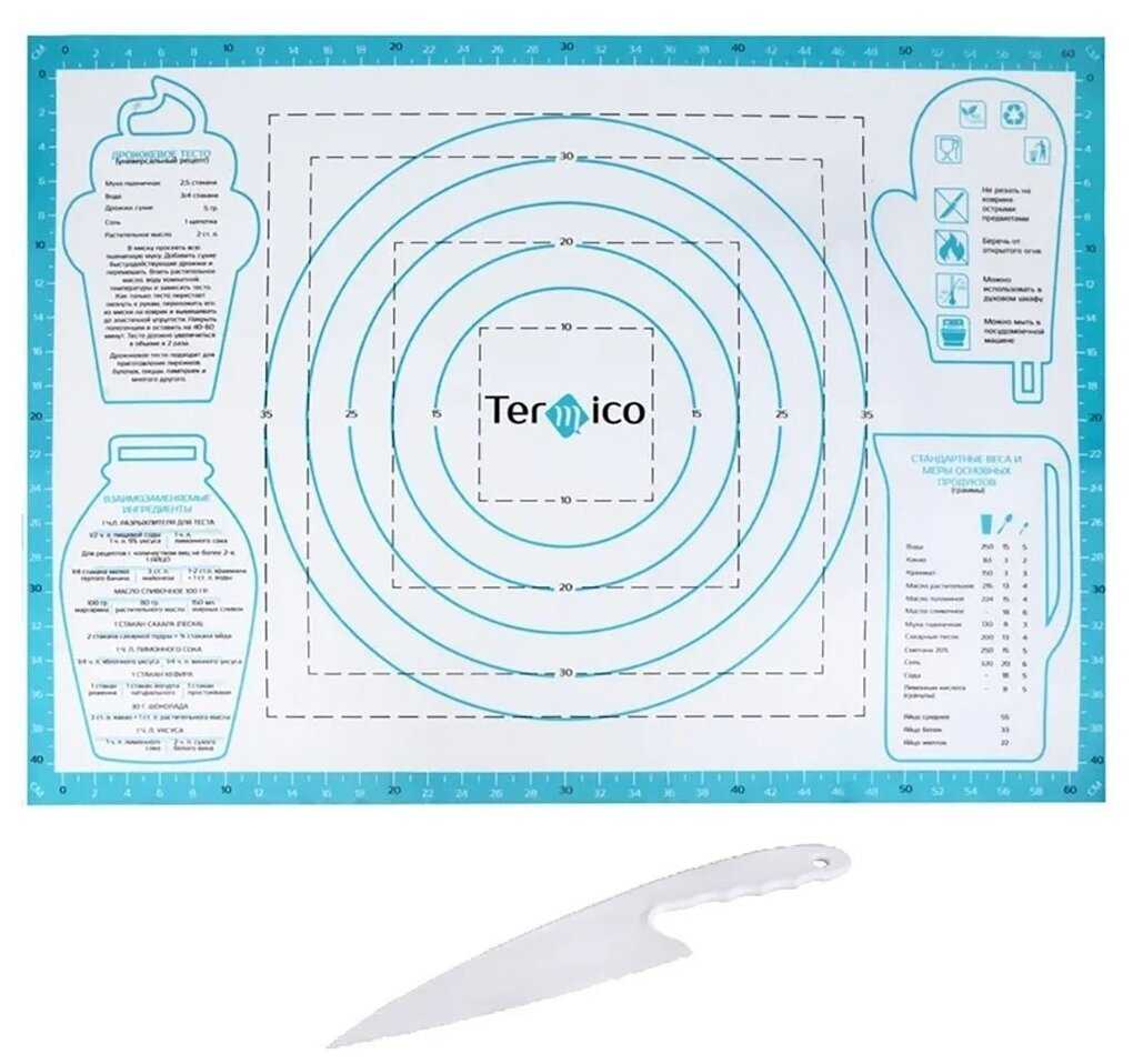 - + Хороший коврик - в комплекте пластиковый нож с закругленными зубчиками для оформления крема на торте.
