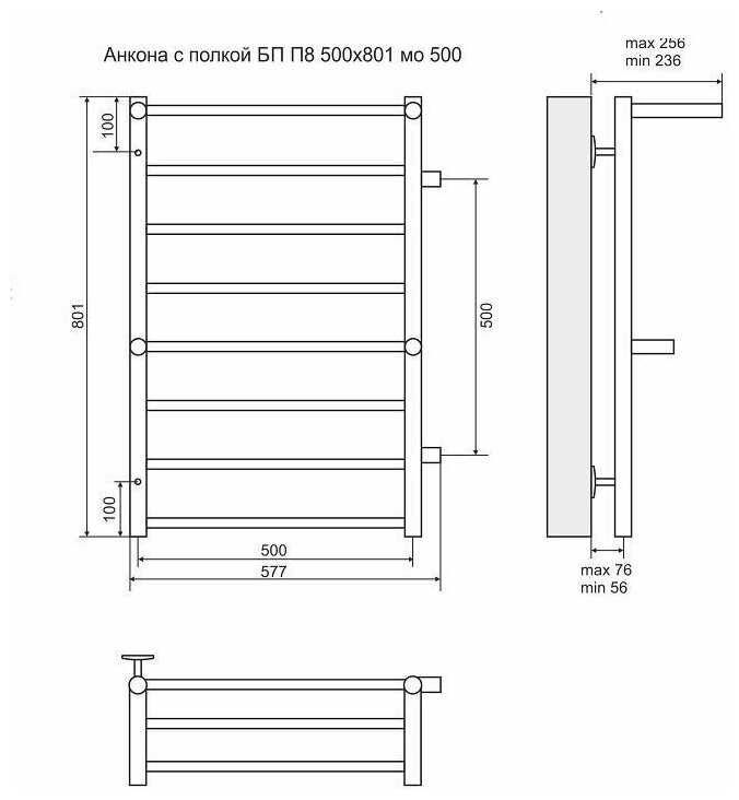 Отзывы о Полотенцесушитель Terminus Анкона П8 577x801 с полкой водяной боковое подключение