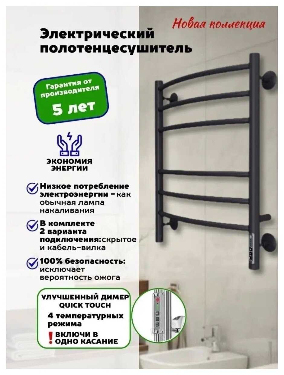 - Мощность 300 Вт на минимальном режиме снижает энергопотребление, при этом обеспечивая достаточный нагрев для сушки 1-2 полотенец.