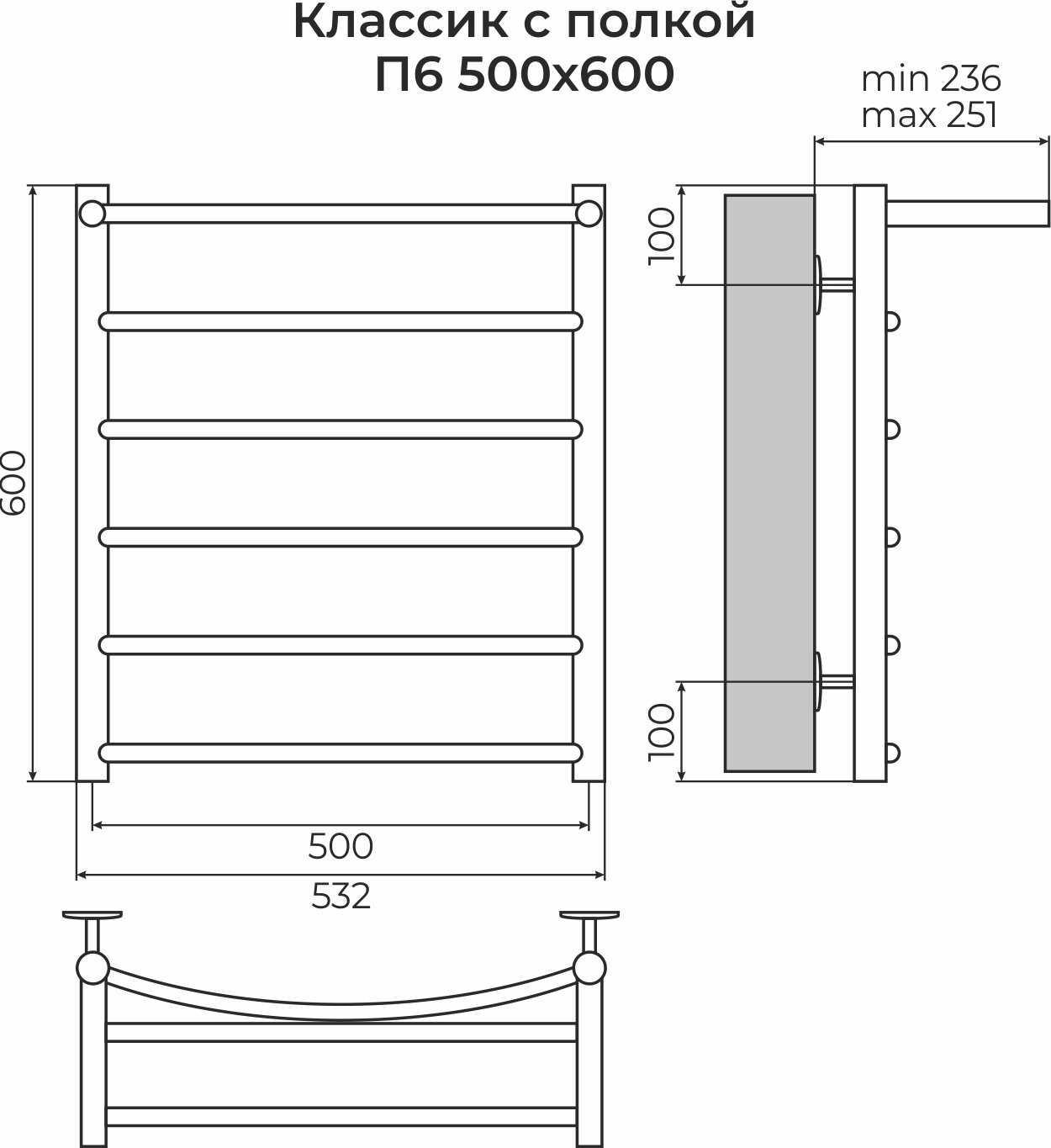 Отзывы о Полотенцесушитель водяной TERMINUS Классик с полкой П8 (500х800 мм)
