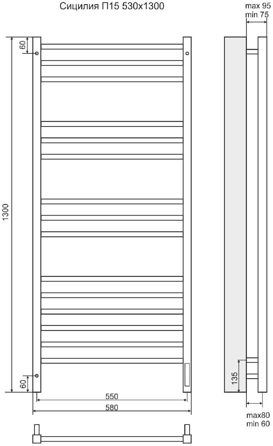 Характеристи TERMINUS Сицилия П15 500х1300 ТЭН Пр.