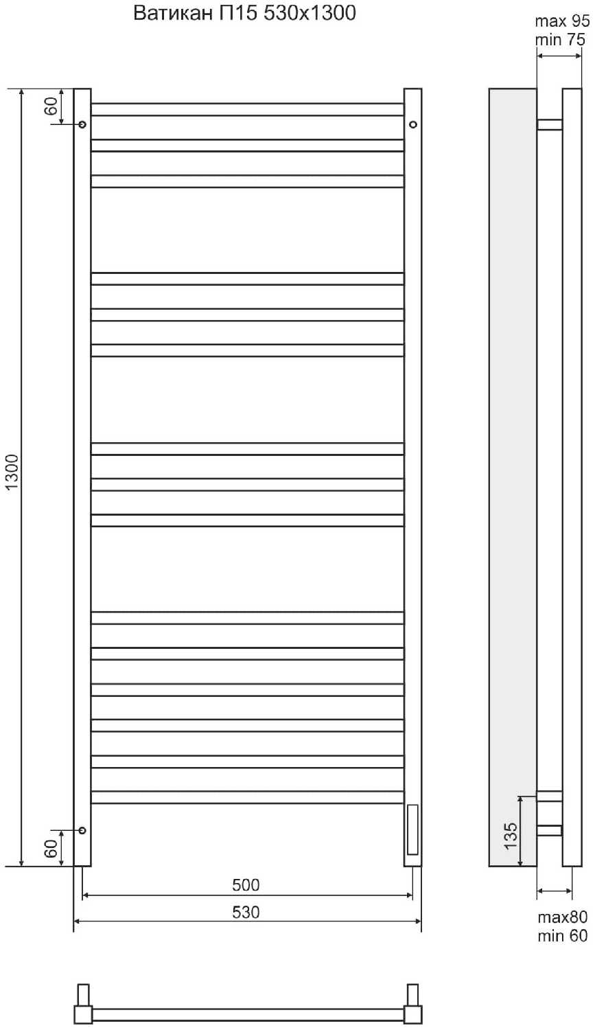 Характеристи TERMINUS Ватикан П15 500х1300 электро (sensor quick touch)