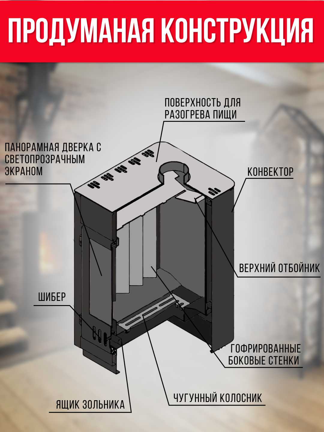 - + большая дверка, высока топка - длинные дрова можно впихнуть стоя или по диагонали