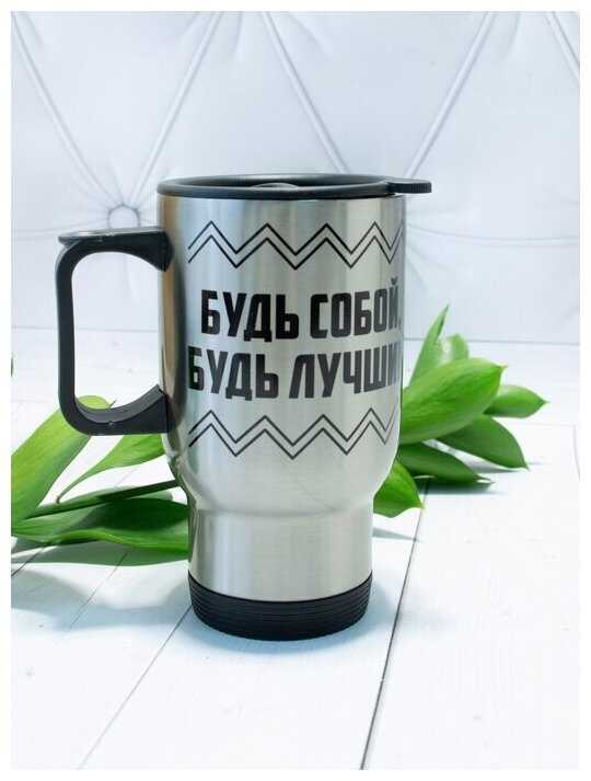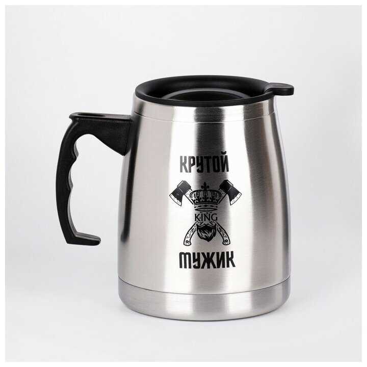 Мастер К. Термокружка для кофе, чая, напитков Мастер К "Крутому мужику" , термостакан с крышкой, объем 500 мл, цвет хром, размер 13х13,5 см