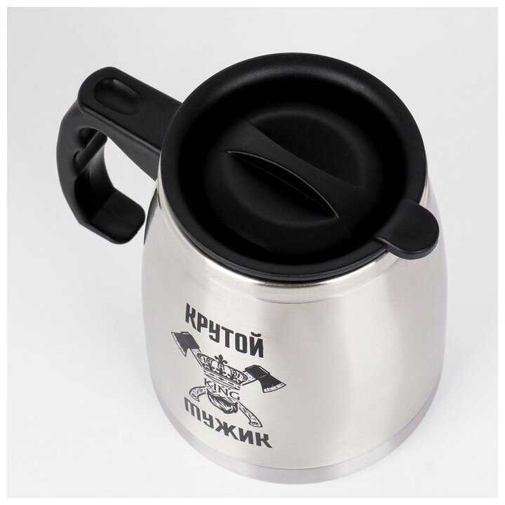 Мастер К. Термокружка для кофе, чая, напитков Мастер К "Крутому мужику" , термостакан с крышкой, объем 500 мл, цвет хром, размер 13х13,5 см