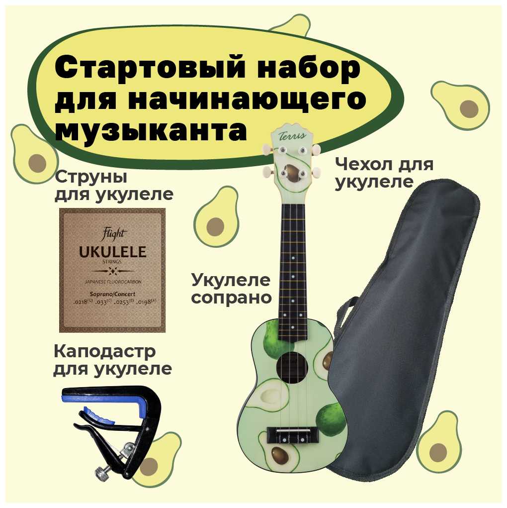 Отзывы о TERRIS AVOCADO PACK - подарочный набор: укулеле, струны, чехол, каподастр