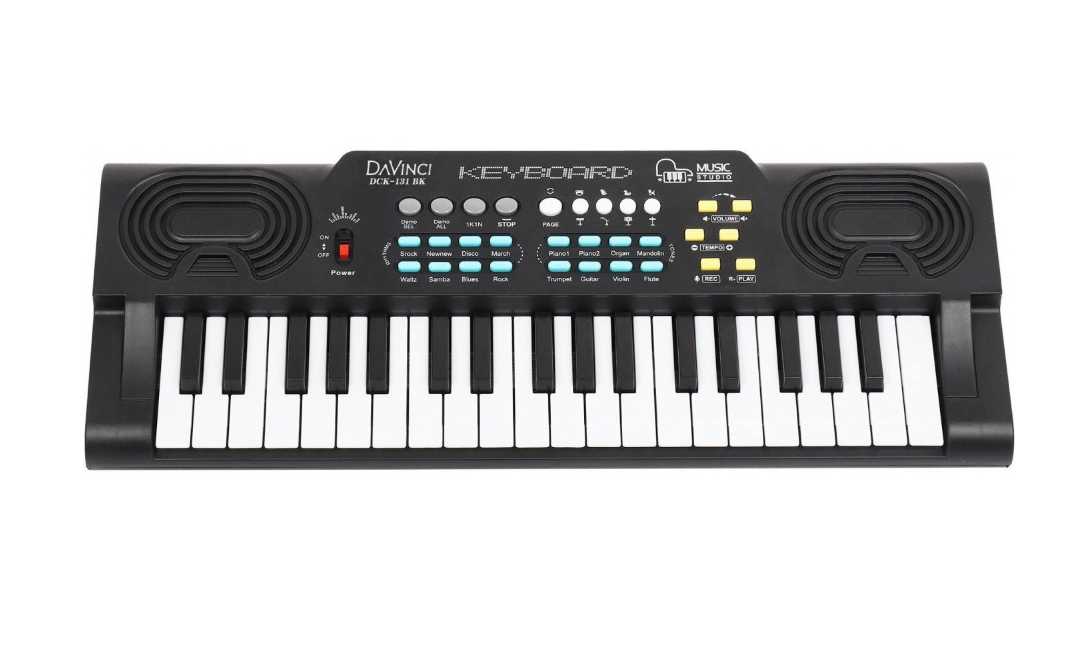 - + Легко освоить. С синтезатором поставляется кабель папа-мама для звука, а также наклейки для клавиш с обозначением нот по буквам и цифрам.