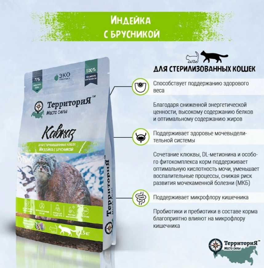 39 отзывов пользователей o ТерриториЯ индейка с брусникой для стерилизованных кошек