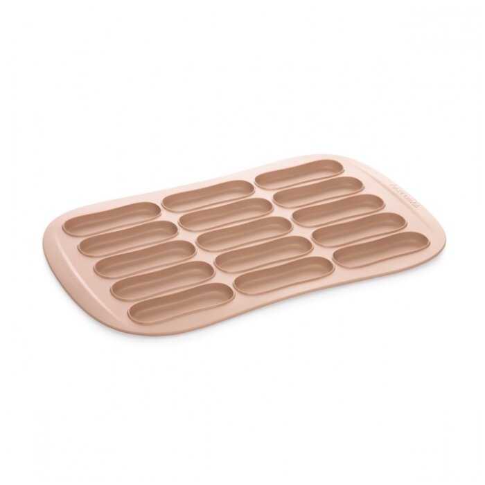 - + изготовлена из жаропрочного силикона, приятного бежевого цвета, для выпекания бисквитных пальчиков в количестве 15 штук, можно мыть в посудомоечной машине