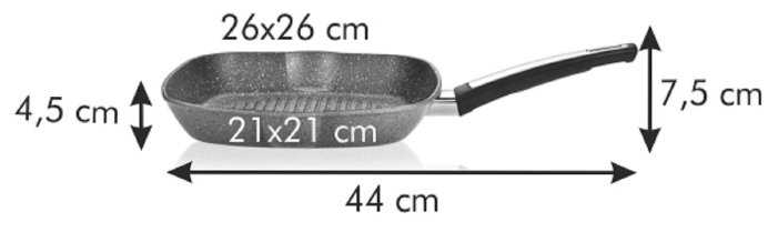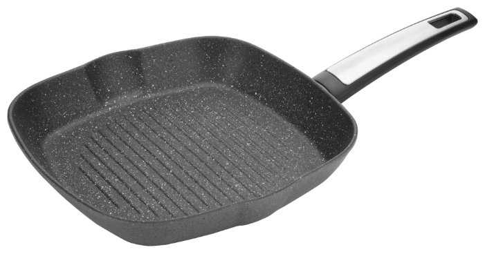 При жарке на этой сковороде на котлетах и отбивных получаются аппетитные полосочки, как после готовки на решетке. Лишний жир остается в канавках. Сковородка достаточно тяжелая, но легче чугунной. Дно усиленное, утолщенное, сковорода хорошо и долго держит тепло.