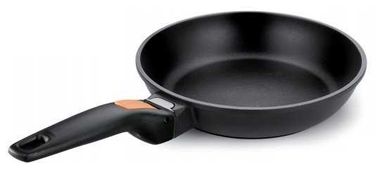 - + Неплохая сковорода с отстежной ручкой. Соответственно, можно ставить в духовку и в посудомойке меньше места занимает.