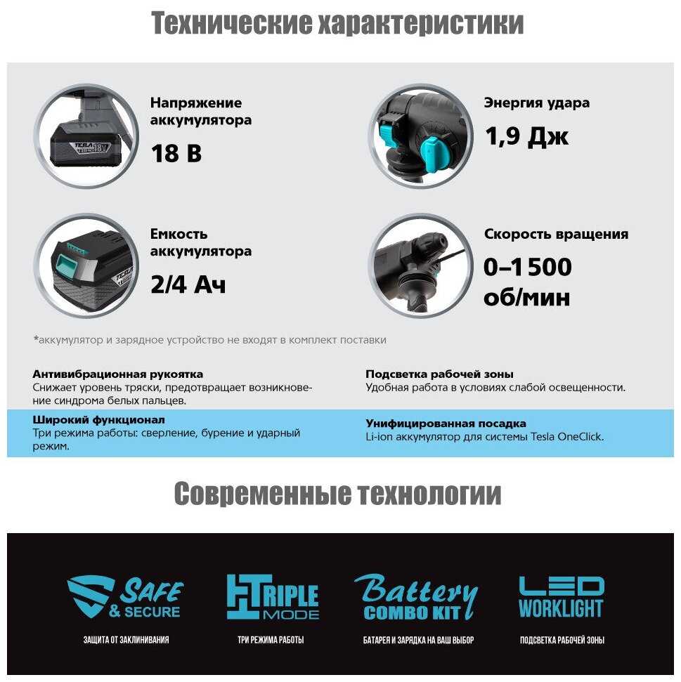 Характеристи Tesla TD18DC 0 коробка, без аккумулятора