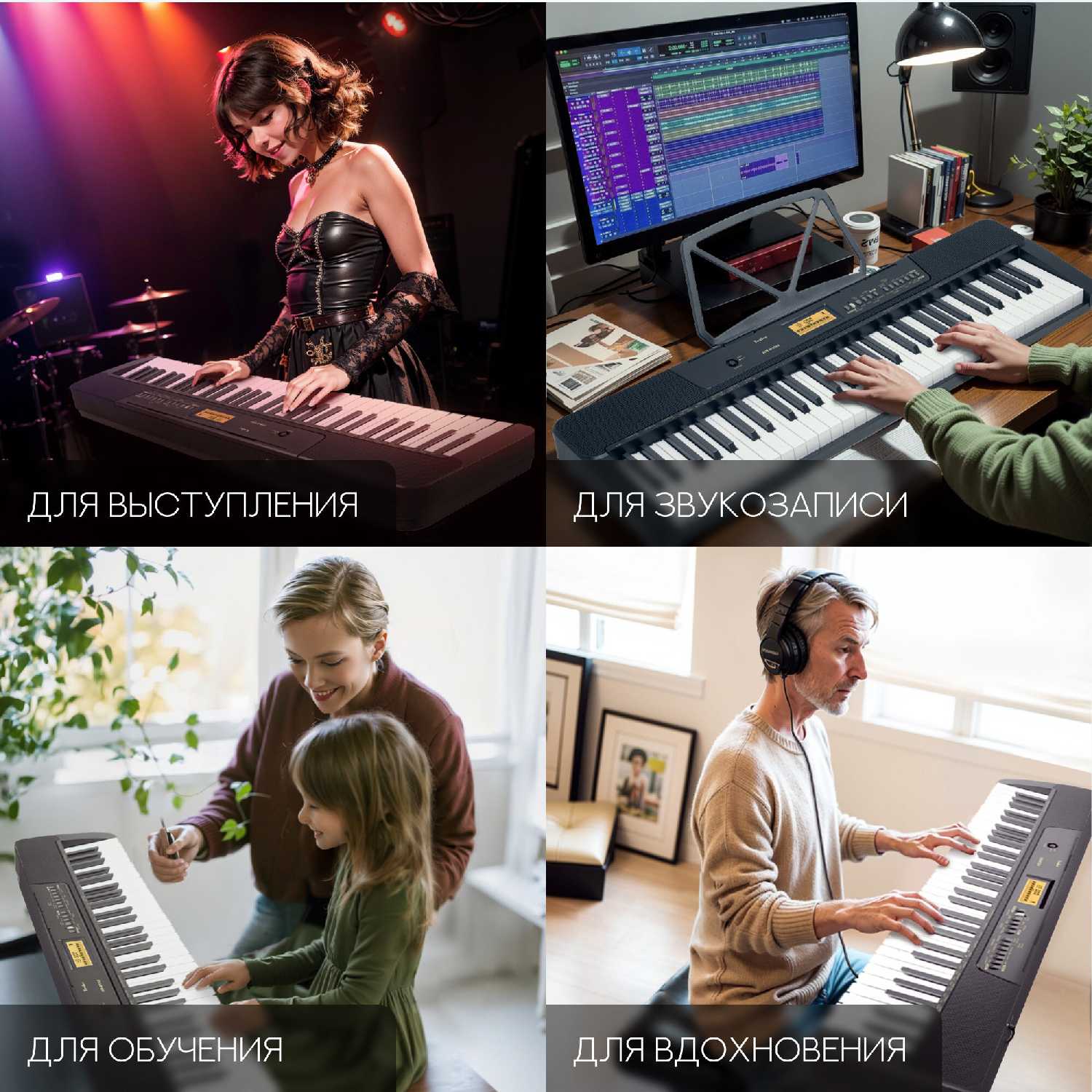 | Функции и опции : | дисплей, запись песен, метроном, обучение, разделение клавиатуры, русский язык, транспонирование |