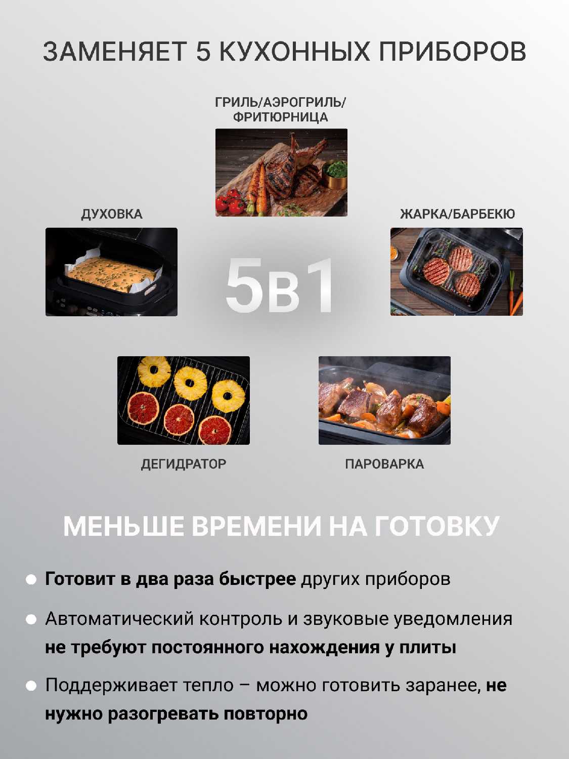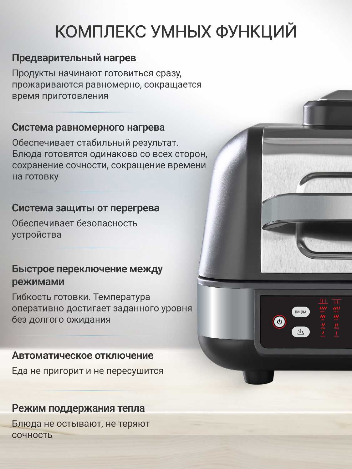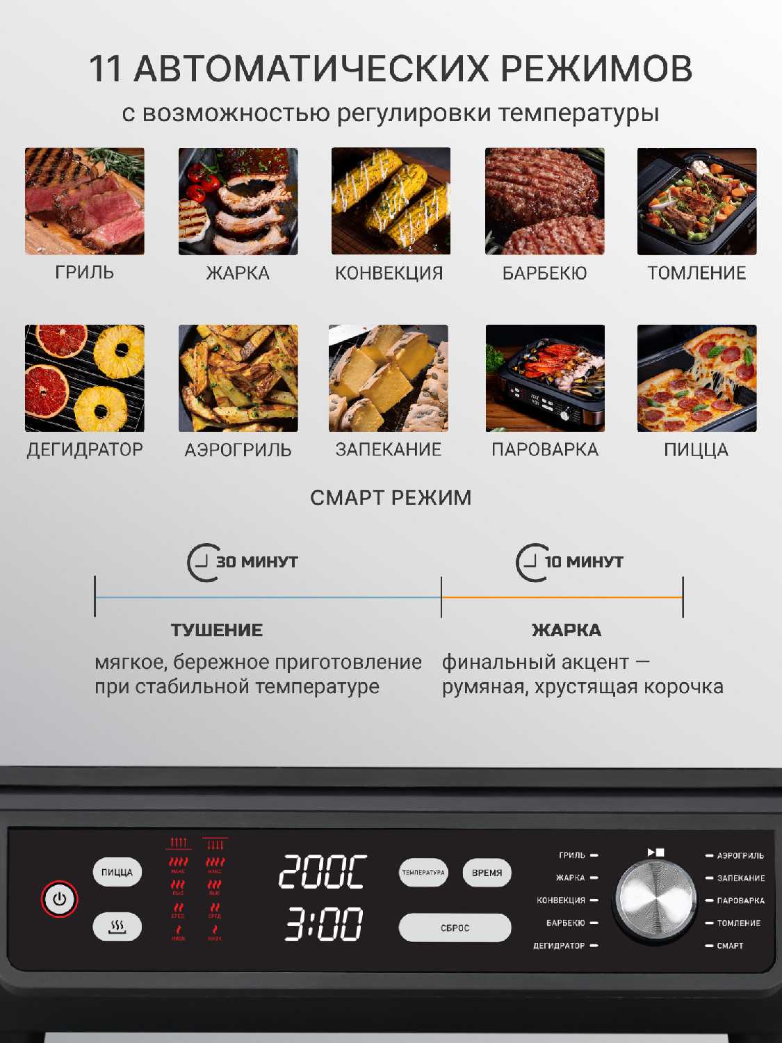 | Дополнительная информация : | режим дегидрации (сушка), пароварка, аэрогриль, режим приготовления пиццы |