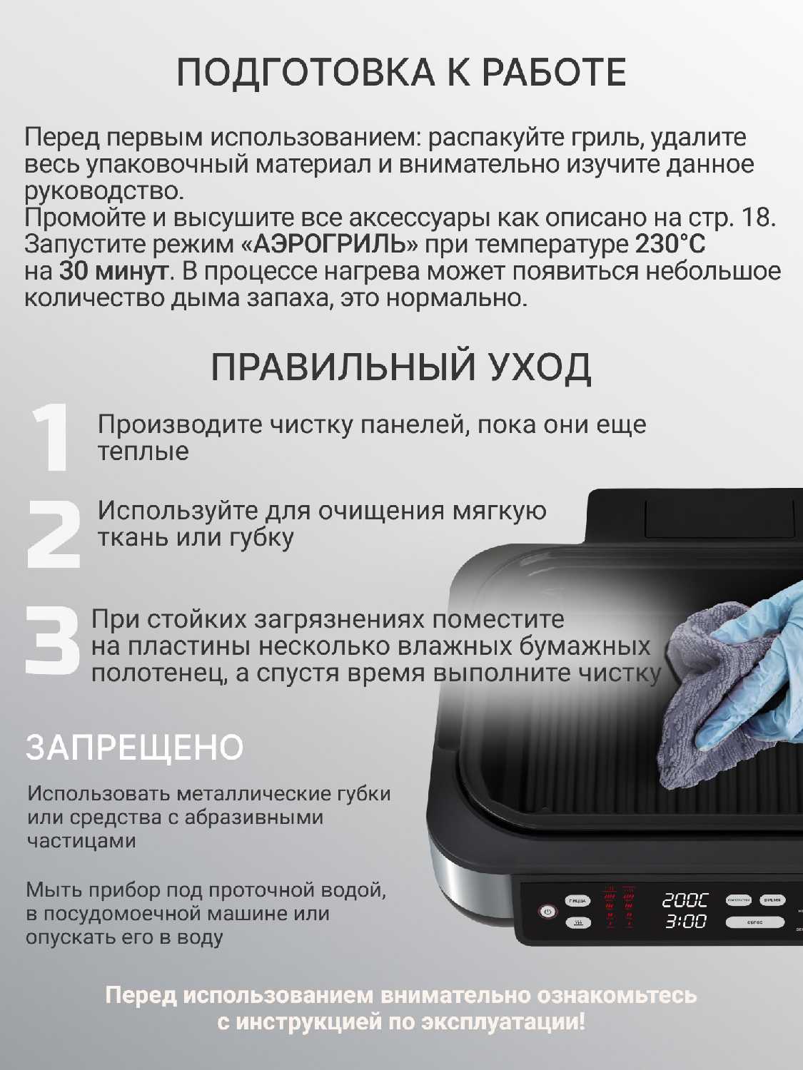 Единственное, было бы здорово иметь в комплекте плоскую панель и мини ёршик или типа того для чистки труднодоступных мест жаровни.