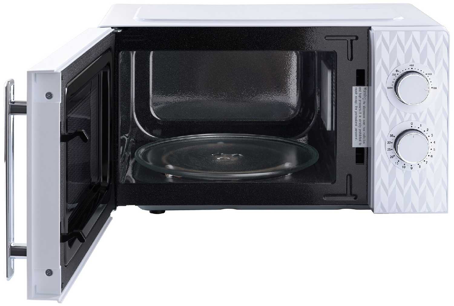 Несмотря на компактные габариты, камера вмещает тарелки диаметром 25 см и кружки высотой до 12 см. Для крупных форм для запекания или объёмных контейнеров пространства может не хватить — модель оптимальна для разогрева порций на 1–2 человек. -