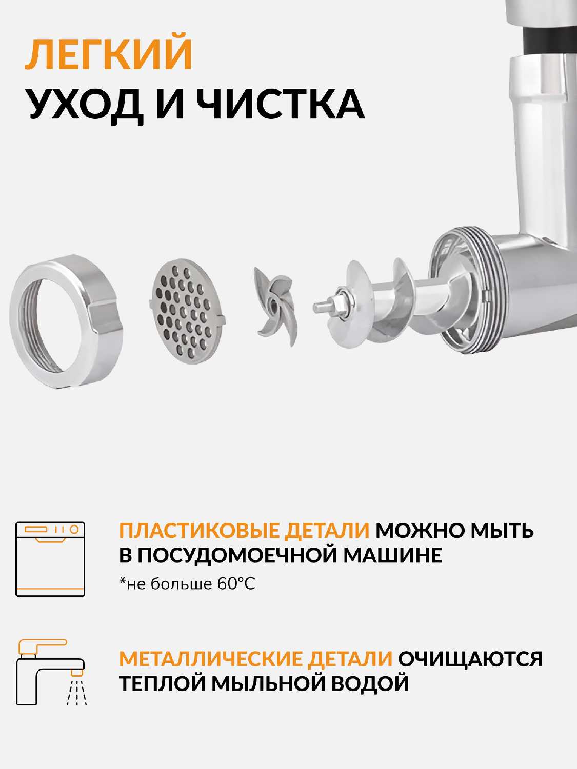 - - Покупал год назад, Использовалась не часто, не более чем один раз в два месяца, эксплуатация была аккуратной без создания каких-либо экстремальных условий. При использовании, до поломки, крутила хорошо, не громко (для меня), но спустя год, прям под конец гарантии, перестала крутить надлежащим способом, а именно, сам двигатель работает, а после него шестерёнки, до шнека стали непонятно как крутить. После поломки появился дополнительный скрежет, и шнек при тот что крутиться не мог прокрутить мясо. Так что лично я не рекомендую эту мясорубку - считаю что цена не соответствует качеству.