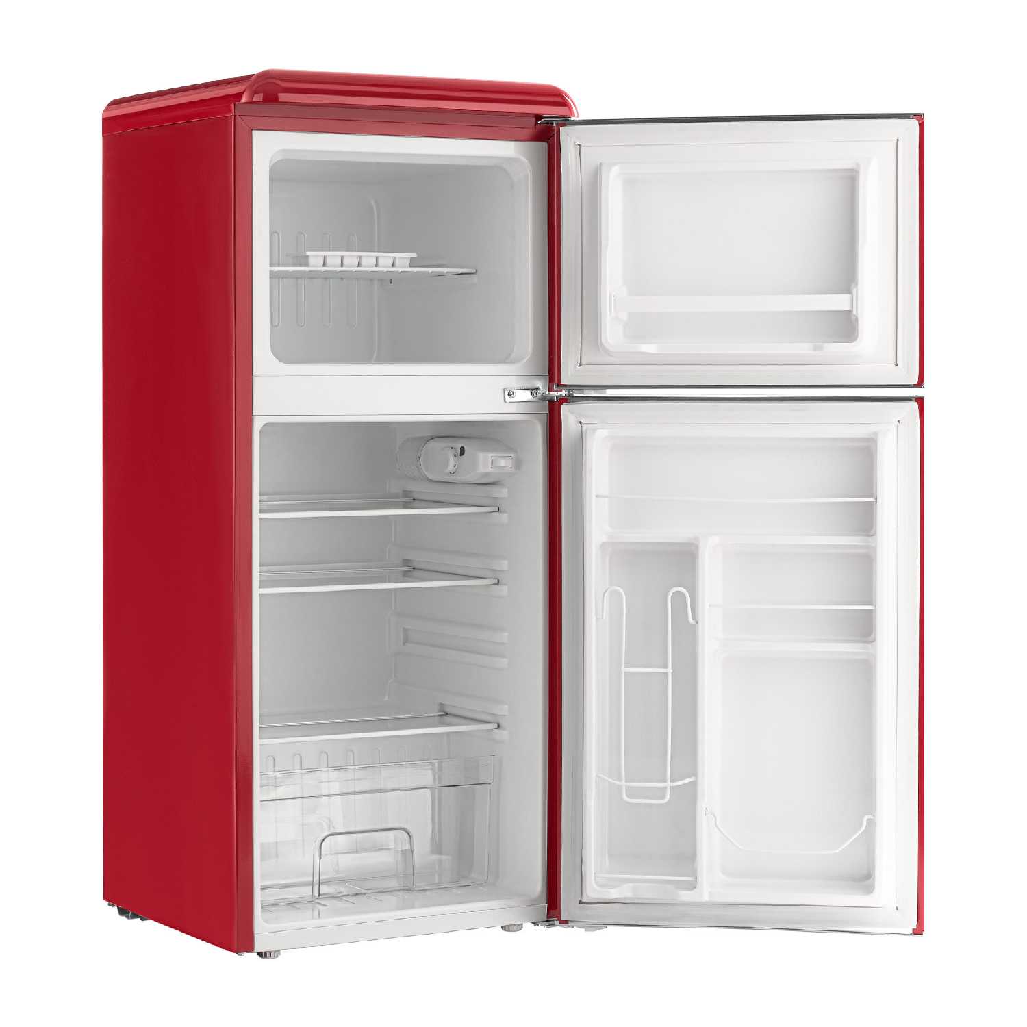 Качество изготовления и материалов внутренних компонентов: Внутреннее оснащение и материалы отделки вызывают наибольшее количество нареканий, характеризуя продукт как типичного бюджетного производителя. Полки в основном отделении выполнены из стекла, что пользователи отмечают как позитивный момент, однако вся фурнитура, включая крепления полок и внутреннюю облицовку дверок, изготовлена из пластика. Качество этого пластика неоднородно: в одних случаях он оценивается как плотный и не крошащийся, в других — отмечается его дешевизна, хлипкость, а также дефекты в виде вспучивания на углах и сморщенности. Ящик для овощей единогласно признается пользователями крайне ненадежным и хлипким. Ручки на дверцах являются декоративными элементами в ретро-стиле и не двигаются, они выполнены из хромированного пластика, который со временем может царапаться, а их крепления часто ненадежны, что приводит к разбалтыванию и самопроизвольному отваливанию. Организация внутреннего пространства, особенно узкие и не функциональные полки на дверце, которые вмещают не более двух бутылок среднего размера, также отмечается как недостаток.